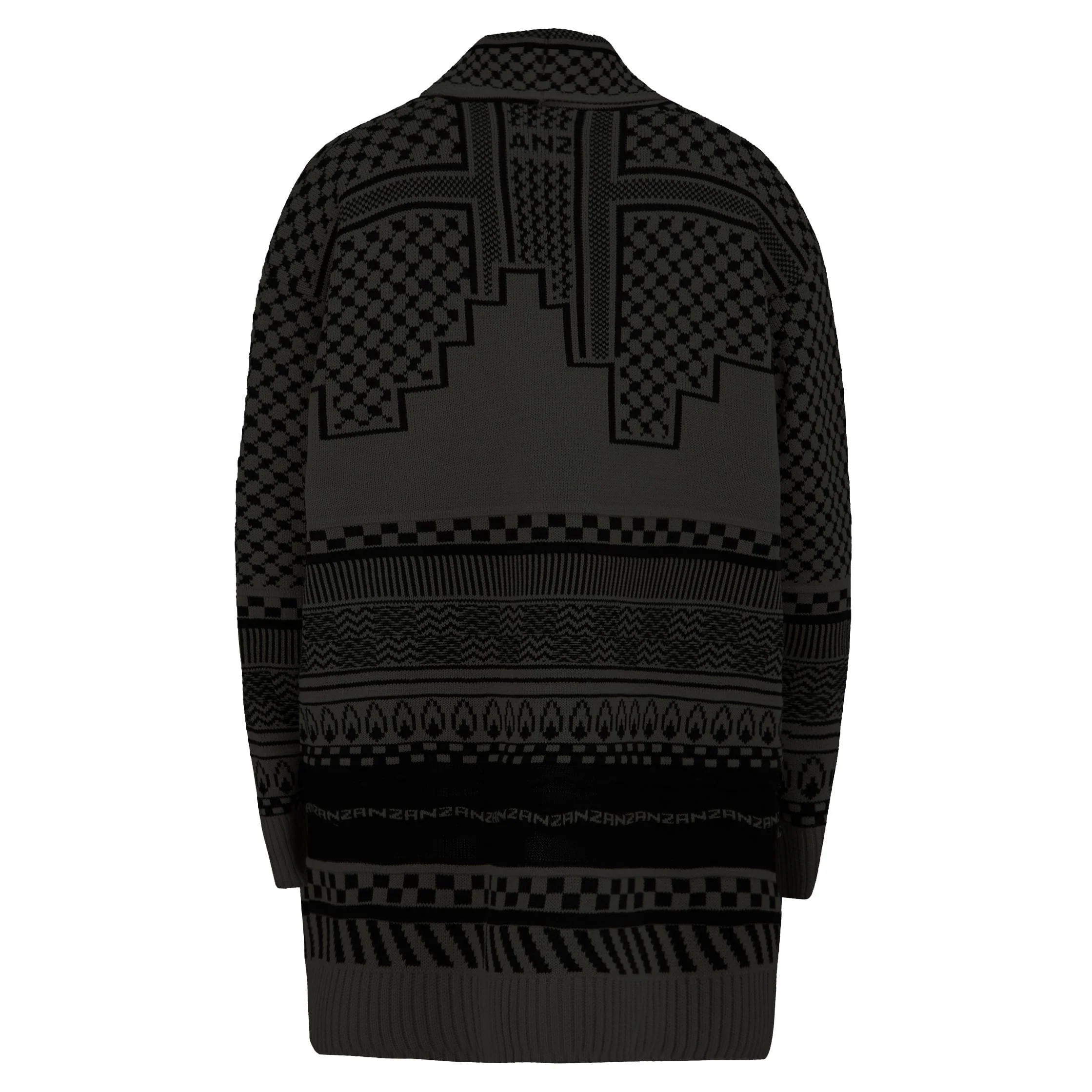 Featuring a signature ANZ retro textured knit, this unisex oversized cardigan boasts a button-free design for a modern and minimalist look. The mitten side pockets add a touch of practicality, making this cardigan not only a stylish choice but also a comfortable one. A true collector's item, this piece is sure to become a staple in any wardrobe, inspiring individuality in those who wear it.